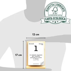Formato del supporto o 12x17x5 cm, perfetto per il Calendario Geniale®, può essere riutilizzato negli anni.